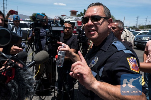 El Paso Police Department officer briefs media on a shooting that occurred at a WalMart near Cielo Vista Mall in El Paso, Texas, on August 3, 2019.(Xinhua/AFP)