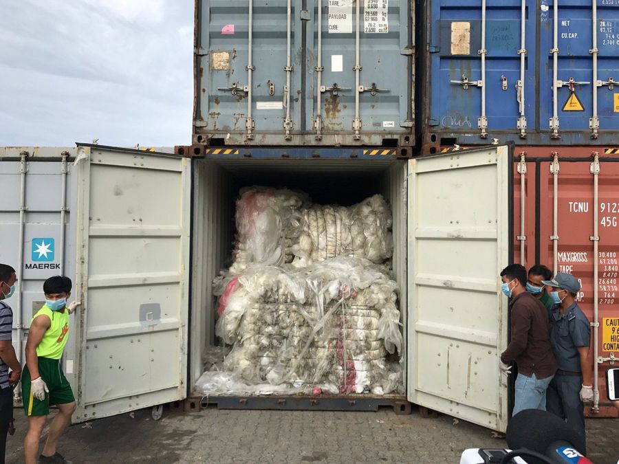 The waste, weighing 1,592 tons in total, was illegally imported to the country from the United States and Canada, Nhim said, adding that 70 containers, weighing 1,322 tons, were imported from the U.S., and 13, weighing 270 tons, from Canada.