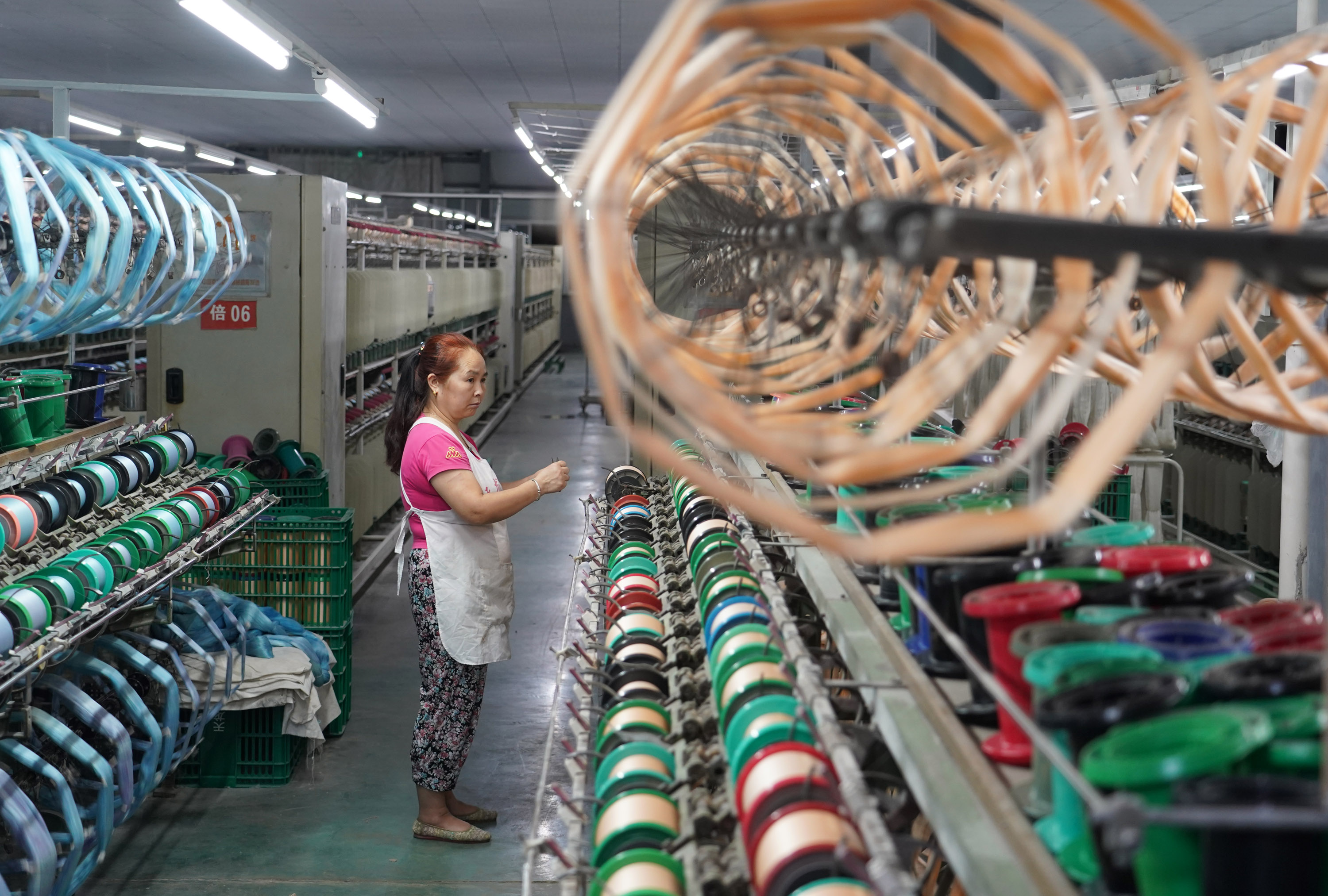 A worker operates at a silk company in Shiquan County, Ankang City, NW China's Shaanxi Province. (Xinhua/Shao Rui)