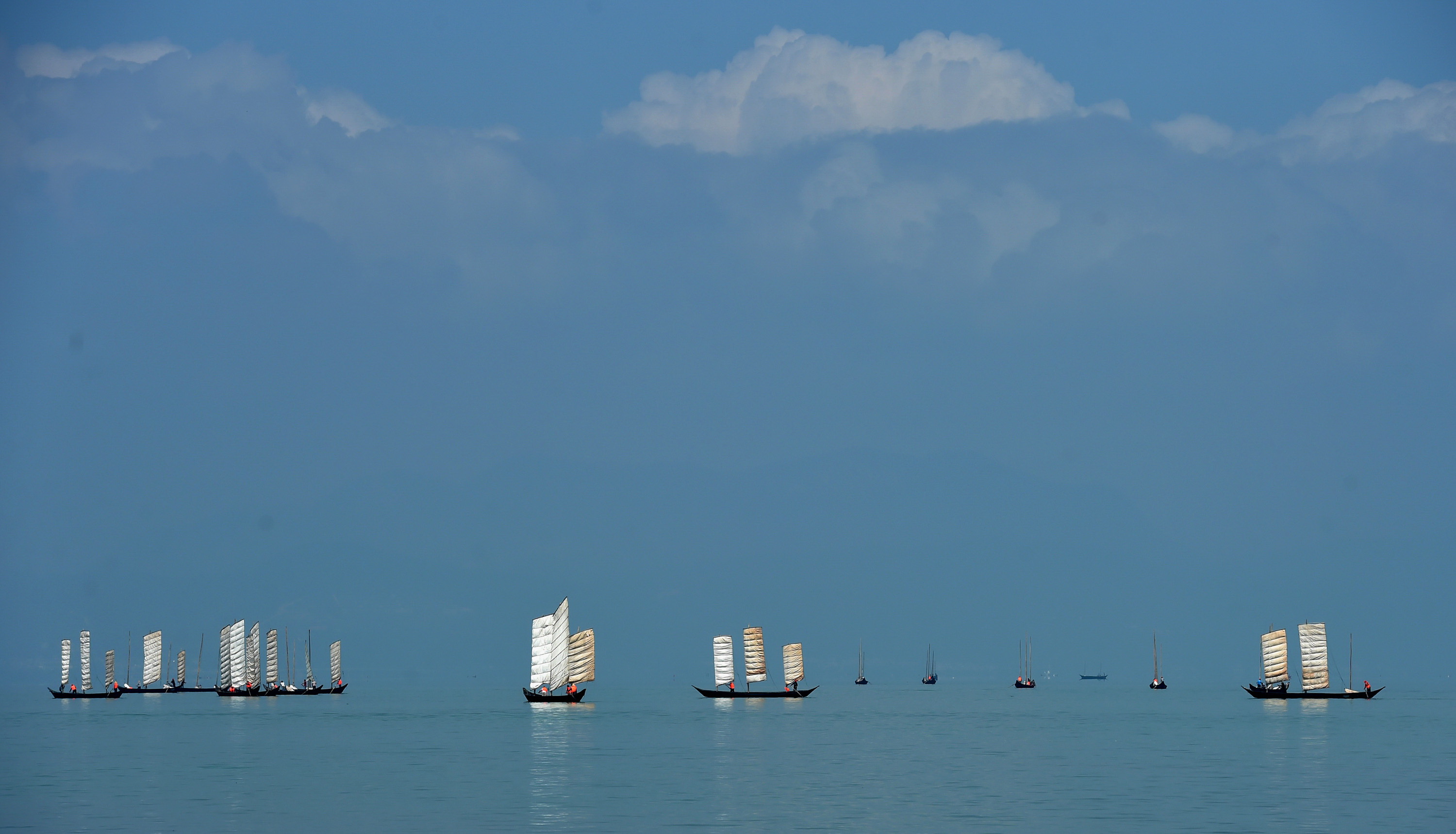 Ships sail on the Dianchi Lake in Kunming, southwest China's Yunnan Province. (Xinhua/Lin Yiguang)