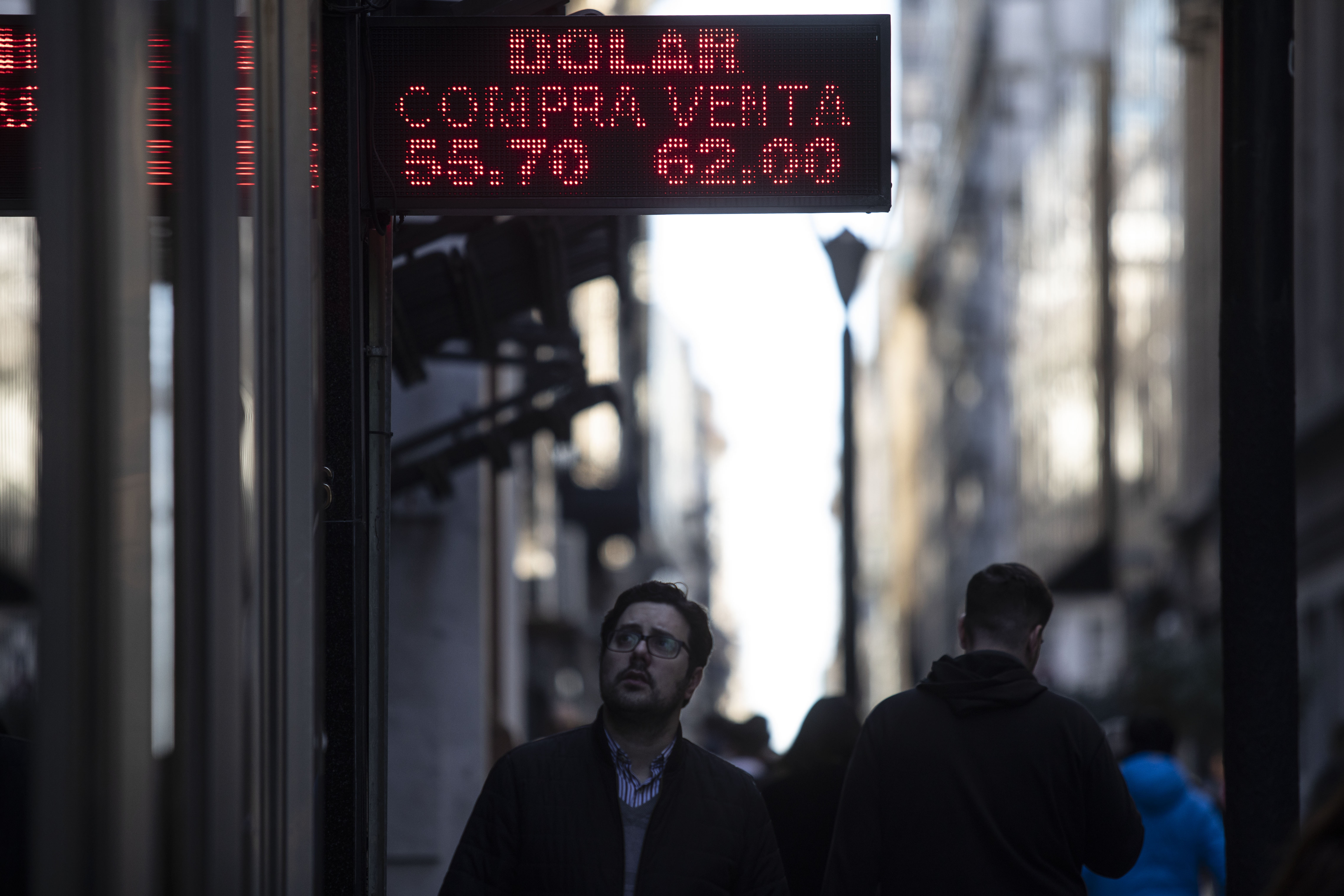 People pass by a currency exchange center in Buenos Aires, Argentina, Aug. 14, 2019. (Xinhua/Martin Zabala)