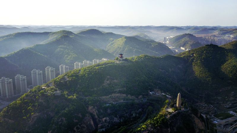 Baota Mountain (R, front) in Yan'an, May 11, 2019. (Xinhua/Tao Ming)
