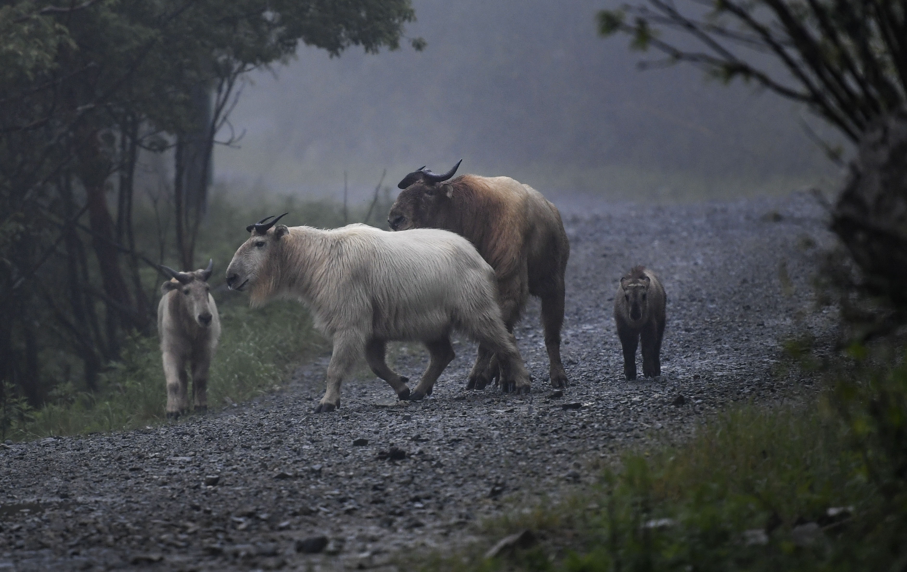 Takins are seen in the Qinling Mountains, June 27, 2019. (Xinhua/Tao Ming)