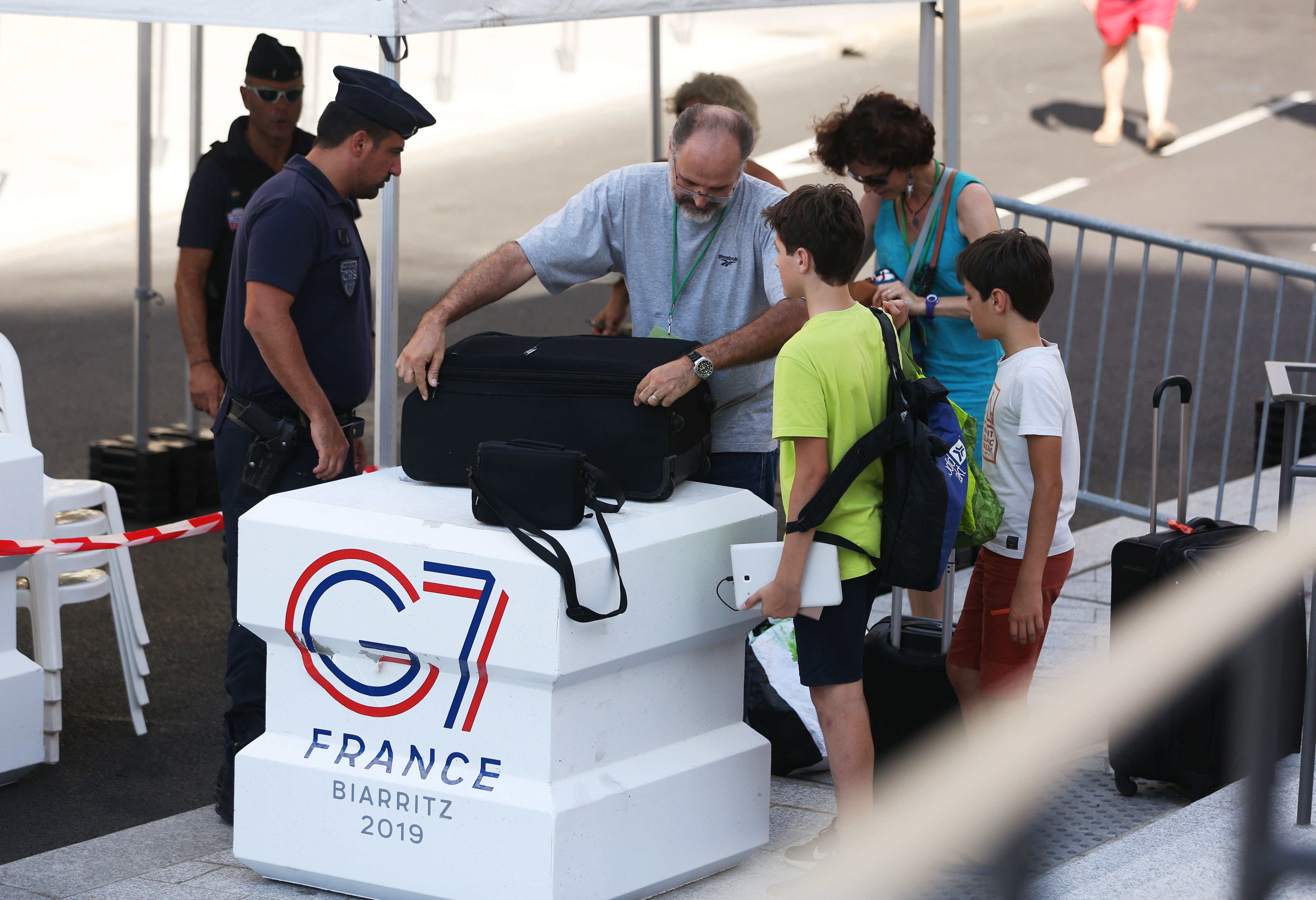 Security personnel check bags in Biarritz, southwestern France, on Aug. 23, 2019. (Xinhua/Gao Jing)