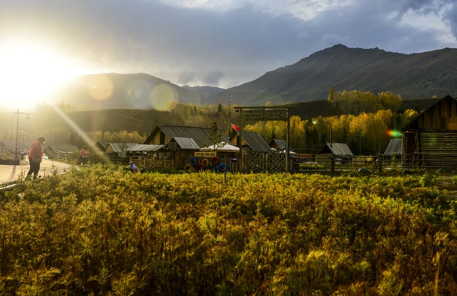 Tourists enjoy the scenery at dusk at Kanas scenic spot in northwest China's Xinjiang Uygur Autonomous Region, Sept. 26, 2019. (Xinhua/Wang Fei)