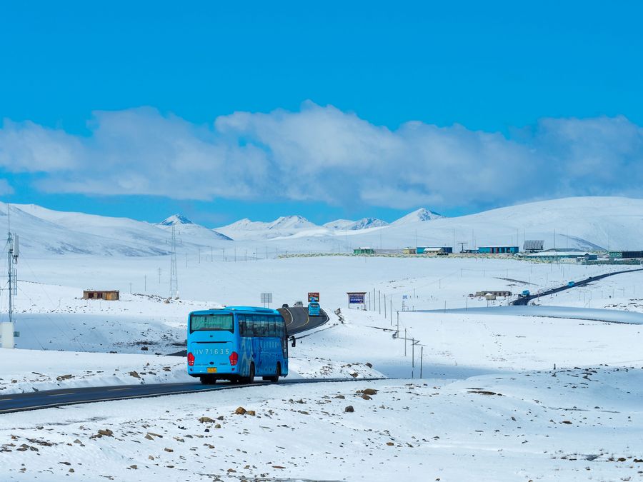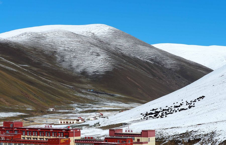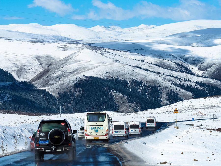 A snowy section of the Sichuan-Tibet highway, Oct. 17, 2019 (Xinhua/Wang Di) ■