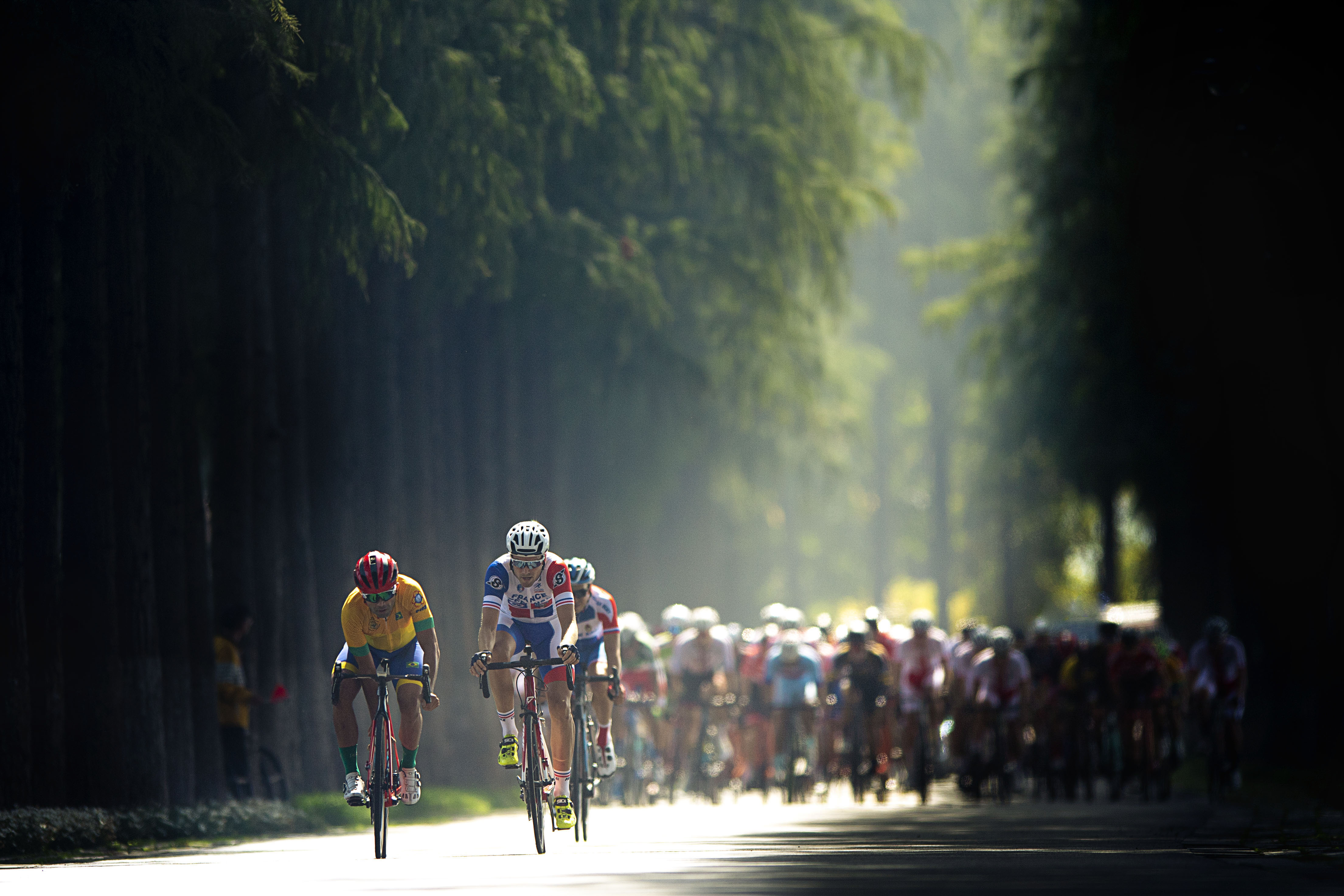 Athletes compete during the men's individual road race final of cycling road at the 7th International Military Sports Council (CISM) Military World Games in Wuhan, capital of central China's Hubei Province, Oct. 21, 2019. (Xinhua/Xiong Qi)