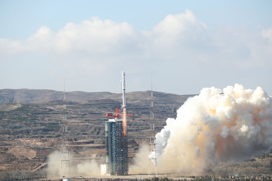 A new Earth observation satellite, Gaofen-7, is launched on a Long March-4B rocket from the Taiyuan Satellite Launch Center in north China's Shanxi Province, Nov. 3, 2019. The Gaofen-7, China's first civil-use optical transmission three-dimensional surveying and mapping satellite that reaches the sub-meter level, will play an important role in land surveying and mapping, urban and rural construction and statistical investigation, according to the China National Space Administration (CNSA). (Photo by Lu Xing/Xinhua)