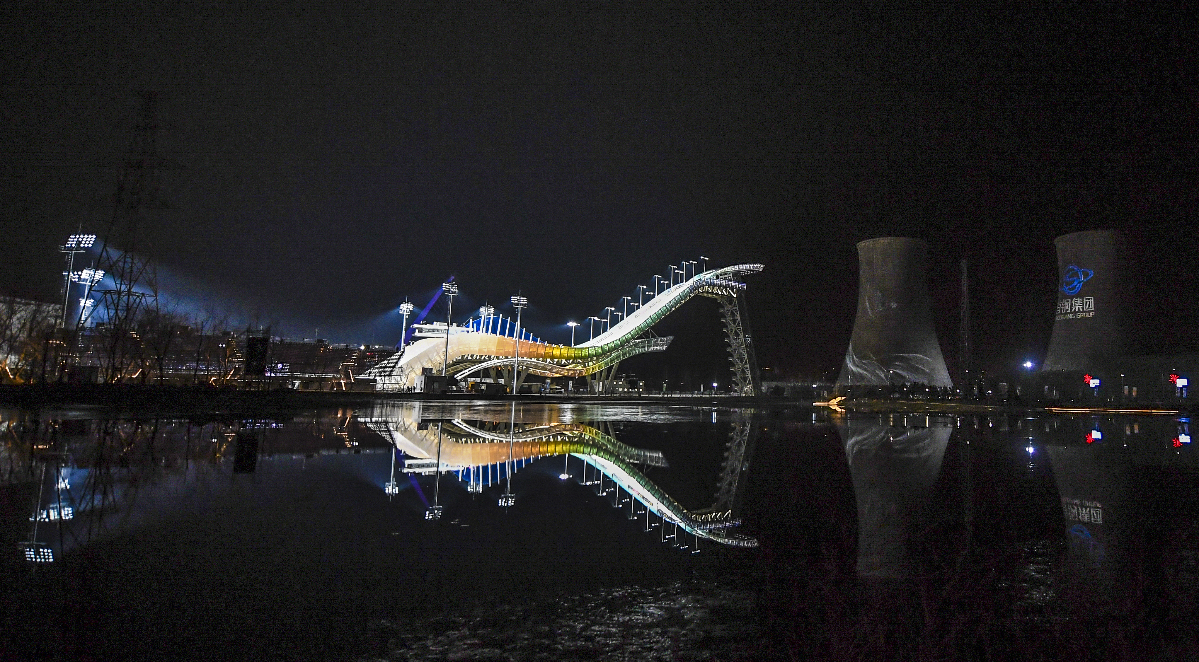 The Shougang ski jumping platform in Beijing, Dec. 14, 2019. As the first newly built competition venue for Beijing 2022 Winter Olympic Games, the Shougang ski jumping platform is like "crystal shoe". It consists of three parts: the track, the referee's desk, and the stand area. The track is 164 meters long, 34 meters wide at the widest and 60 meters high at the highest point. (Xinhua/Xia Yifang)