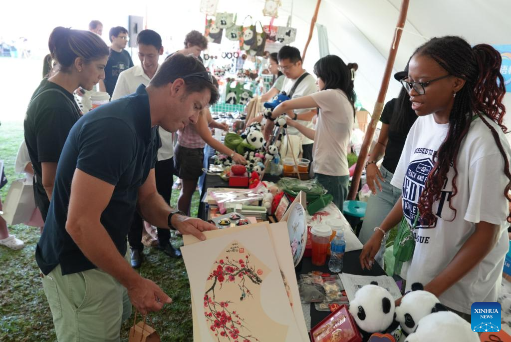Local people visit a stall to buy Chinese handicrafts at the Chinese New Year temple fair in Cape Town, South Africa, Feb. 21, 2026. (Xinhua/Wang Lei)