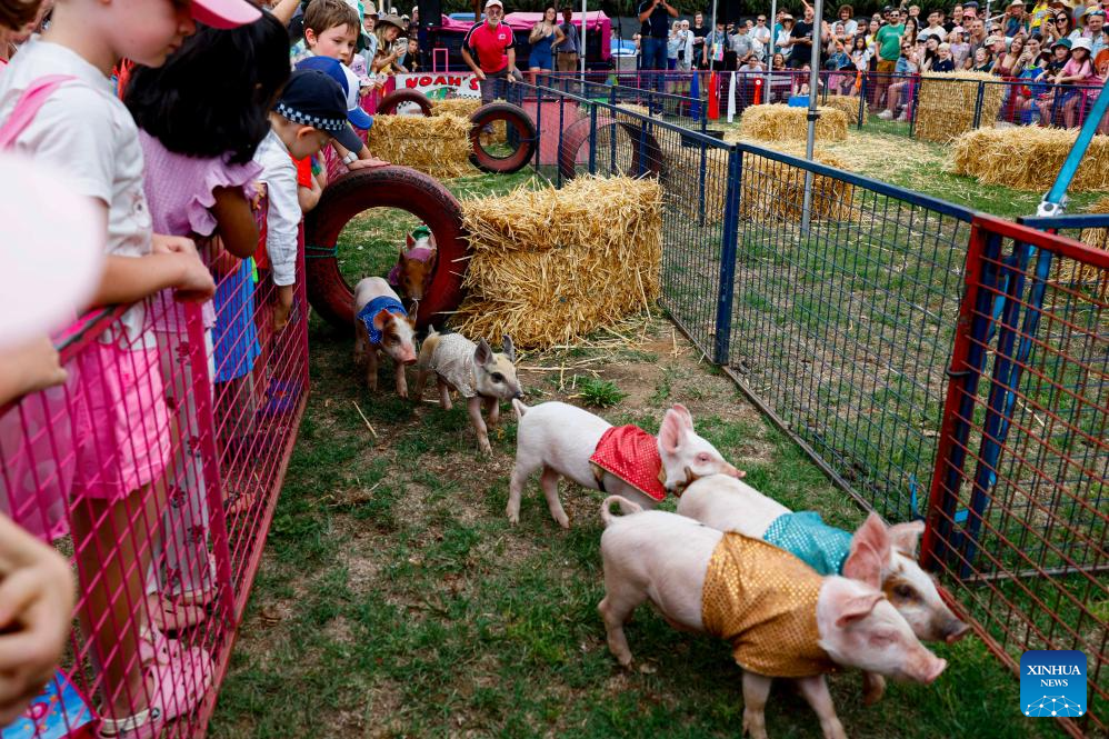 Pet pigs are pictured at the 2026 Royal Canberra Show in the Exhibition Park in Canberra, Australia, Feb. 22, 2026. (Photo by Chu Chen/Xinhua)