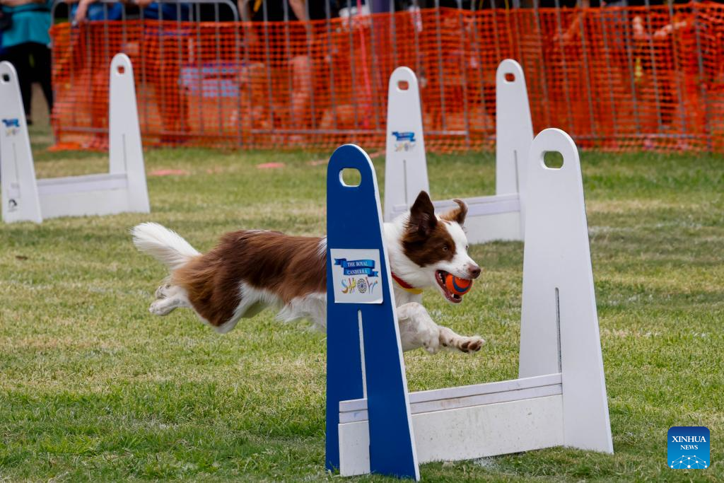 A dog is pictured at the 2026 Royal Canberra Show in the Exhibition Park in Canberra, Australia, Feb. 22, 2026. (Photo by Chu Chen/Xinhua)