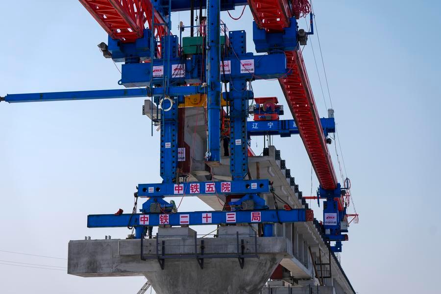 JIAMUSI, March 20 (Xinhua) -- The Tongjiang super major bridge, part of the capacity expansion and renovation project for the Jiamusi-Tongjiang Railway, resumed beam erection on Friday.