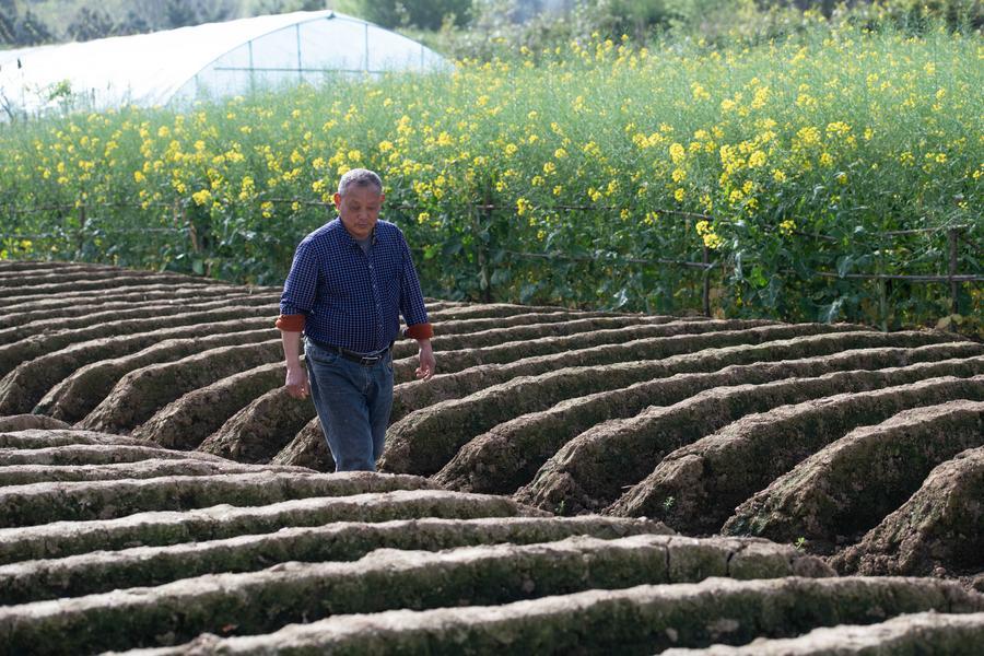 TONGLING, April 6 (Xinhua) -- Around the Qingming Festival, farmers in Tongling are busy ridging fields, planting white ginger, applying fertilizer, and building ginger sheds.
