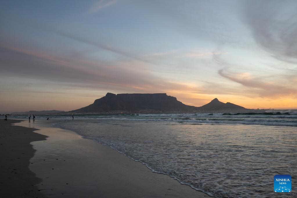 Photo taken on March 26, 2022 shows a view of Sunset Beach at sunset in Cape Town, South Africa. (Xinhua/Lyu Tianran)