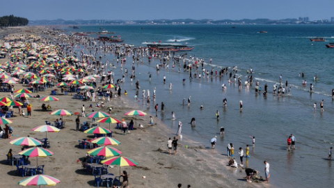 Tourists flock to beach in Guangxi during Chinese New Year holiday