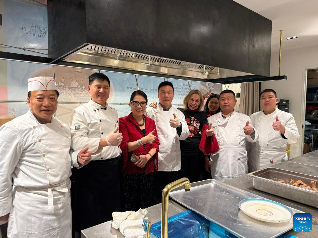 NEW YORK, Feb. 10 (Xinhua) -- A Chinese New Year banquet was held Monday evening at the China Institute Culinary Center in Lower Manhattan, New York City, featuring an exquisite eight-course dinner prepared by five master chefs from Beijing.
