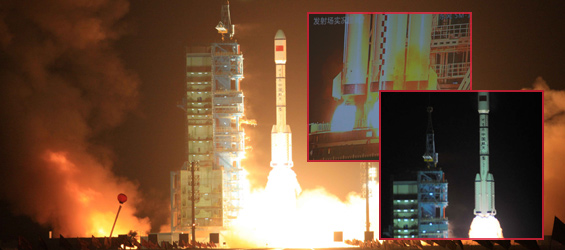 The graphics shows the launch procedures of the carrier rocket of Tiangong-1 space lab module, Long March-2FT1 on Sept. 29, 2011.