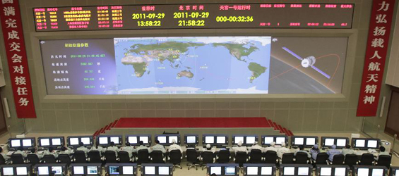 Chinese President Hu Jintao watches the launch of Tiangong-1 space lab module at Beijing Aerospace Control Center in Beijing, capital of China, Sept. 29, 2011.