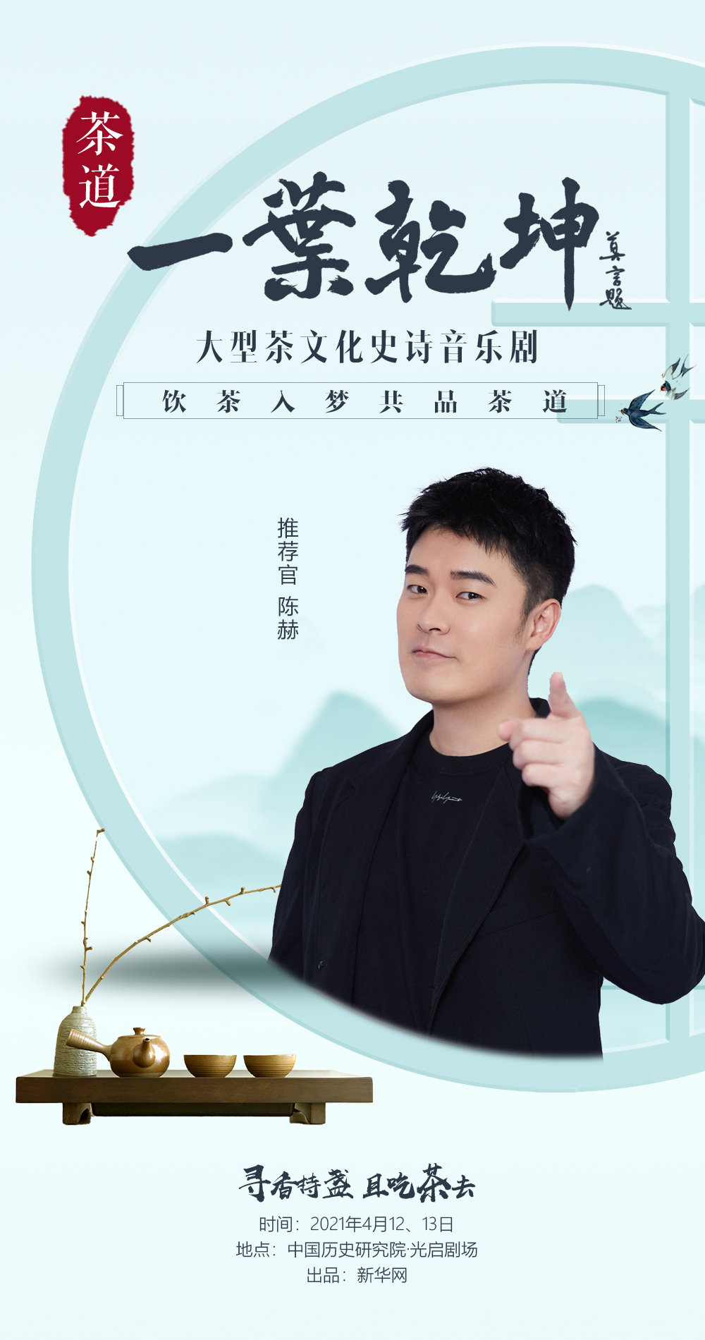 一茶一世界,一葉一乾坤。由新華網(wǎng)出品的大型茶文化史詩音樂劇《茶道:一葉乾坤》將于2021年4月12日-13日在中國歷史研究院光啟劇場隆重上演?!恫璧溃阂蝗~乾坤》推薦官陳赫向您發(fā)出邀請,邀您共賞葉中乾坤,以茶會友,共品茶道。