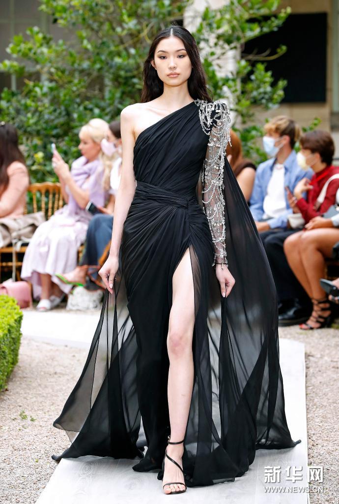 7月7日,模特在法國(guó)巴黎高級(jí)定制時(shí)裝周上展示Zuhair Murad品牌2021/2022秋冬新品。