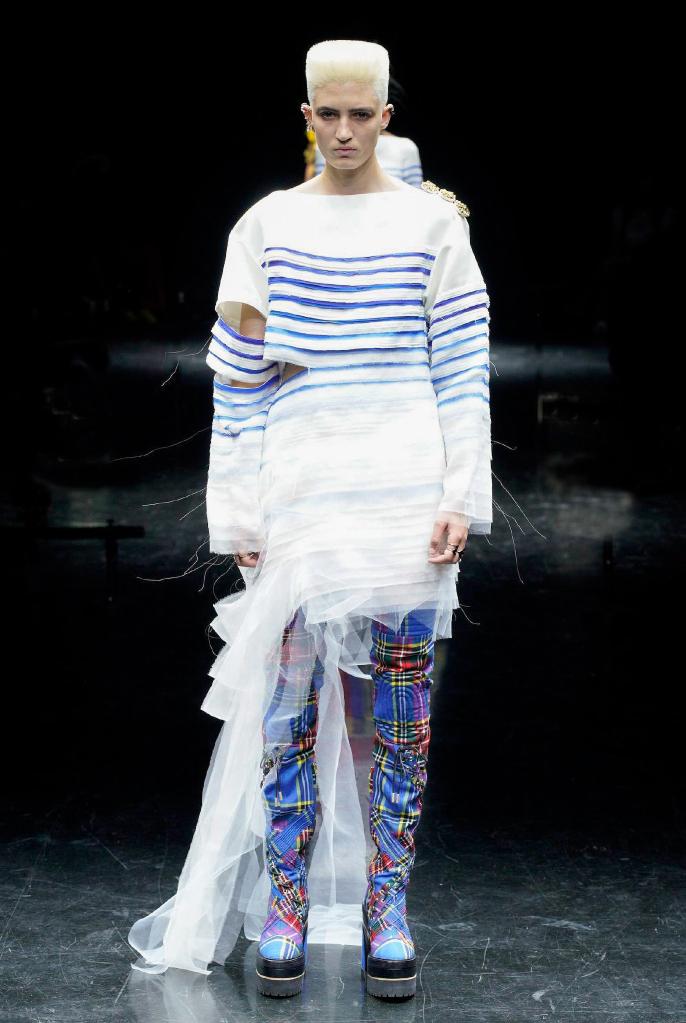 7月7日,模特在法國巴黎高級定制時裝周上展示讓·保羅·高緹耶(Jean Paul Gaultier)品牌2021/2022秋冬新品。