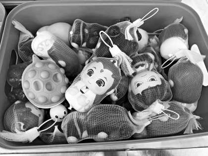 玩具批发市场上的“捏捏乐”,只套着一个简易的网袋,没有任何产品标签、成分说明或生产厂家信息。