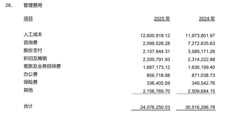 正大种业自2025年1月1日至2025年12月31日止年度管理费用数据。