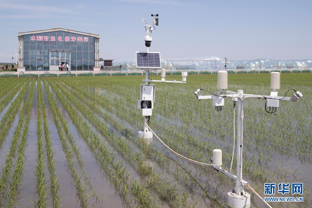 黑龍江省富錦市東北水田現(xiàn)代農(nóng)機專業(yè)合作社稻田里的專業(yè)設(shè)備(2020年6月12日攝)。