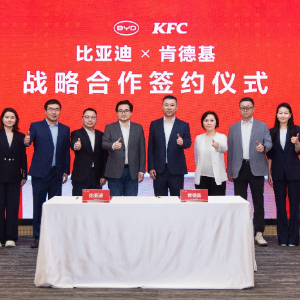 4月8日,比亚迪与肯德基在深圳比亚迪全球总部正式签署战略合作协议。双方聚焦智能出行与便捷餐饮服务场景,将肯德基“车速取”服务深度融入比亚迪现代出行生态,围绕车机联动点餐、门店配套闪充开展全方位合作,共同开创汽车产业与餐饮行业跨界融合的全新范式。