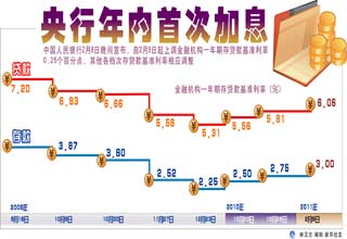 加息接踵而來,一方面表示央行貨幣政策要轉(zhuǎn)為穩(wěn)健,另一方面也顯示出通脹不減,加息壓力難除。 [詳細(xì)]