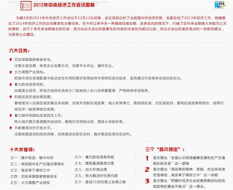[2013年中國經(jīng)濟(jì)穩(wěn)進(jìn)好 調(diào)控方式創(chuàng)新是主因] [2013年GDP是一個(gè)沒有副作用的增長] ["三產(chǎn)"首次超"二產(chǎn)"] [28省份GDP總量超全國2萬億] [外媒:2014是中國經(jīng)濟(jì)改革成敗攸關(guān)一年] [收入分配改革迫在眉睫]
