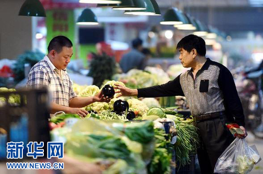 2015年10月14日,市民在鄭州市緯四路菜市選購(gòu)蔬菜。新華社記者 李博 攝