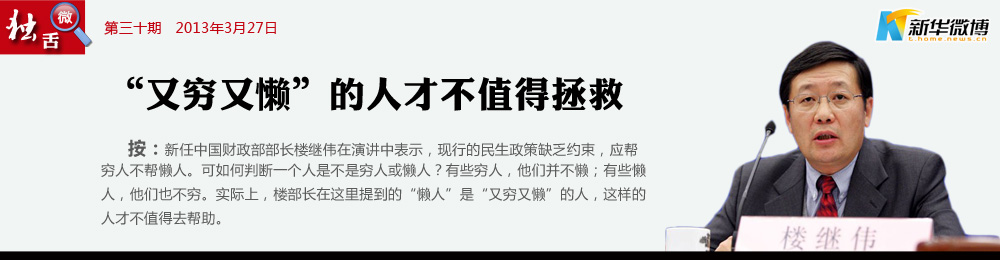 幫窮人,也別防范懶人 幫助“窮人”而不養(yǎng)“懶人”,這當(dāng)然沒錯(cuò)。不過,政府需要更多作為的,主要是幫助“窮人”,而不是防范“懶人”。