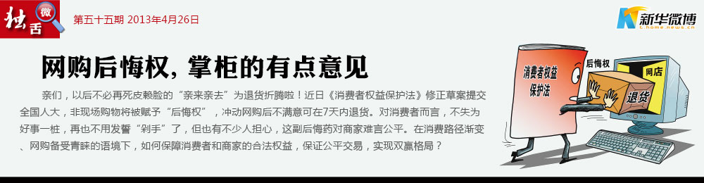 【賣家能有保障嗎?】 網(wǎng)絡(luò)是虛擬的,網(wǎng)購卻是實體的。為了防止消費者的惡意退貨,甚至以此為要挾出現(xiàn)職業(yè)退貨族,可以考慮非質(zhì)量問題的無理由退貨收取手續(xù)費。這應該是“后悔權(quán)”對于賣家的一個保障!