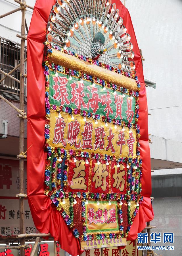 春節(jié)將至,行走在香港新界的元朗街頭,不時能看到高達兩三層樓的大型裝飾花牌矗立路邊,其上描龍畫鳳、花團錦簇,寫滿了“恭賀新禧”“丁財兩旺”“金銀滿堂”等祝福語,為新冠肺炎疫情陰霾下的香港平添了幾分喜氣。