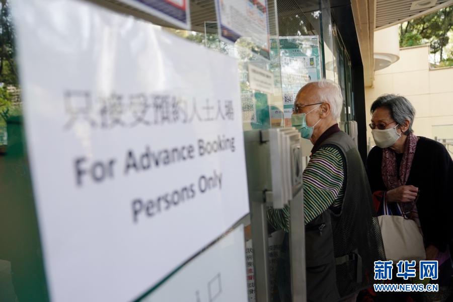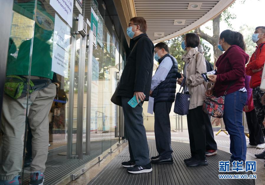 2月26日,在位于香港中央圖書館的社區(qū)疫苗接種中心,市民在入口處排隊。新華社記者 王申 攝