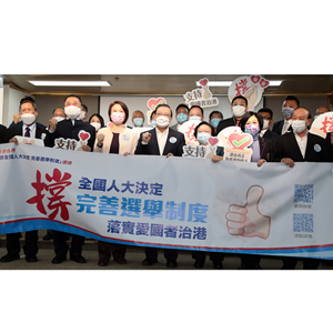 香港工聯(lián)會(huì)會(huì)長(zhǎng)吳秋北、香港經(jīng)民聯(lián)主席盧偉國(guó)、香港廣東社團(tuán)總會(huì)主席龔俊龍、香港福建社團(tuán)聯(lián)會(huì)主席吳換炎等均表示,將堅(jiān)定支持全國(guó)人大完善香港選舉制度的決定,讓“一國(guó)兩制”行穩(wěn)致遠(yuǎn),令香港長(zhǎng)治久安。