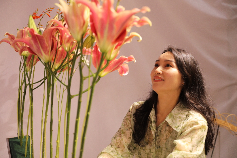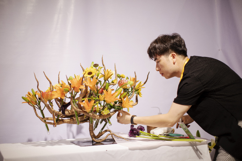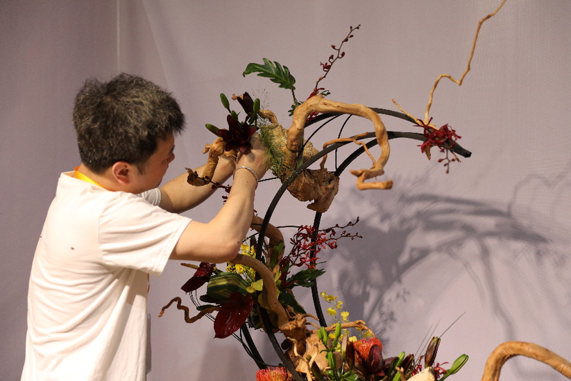 “輕攏慢捻抹復(fù)挑,插花也如琵琶語。”記者在現(xiàn)場看到,選手們沉浸在插花藝術(shù)創(chuàng)作中,鮮花、枝葉在他們的手中經(jīng)過一番規(guī)整修剪,又如繪畫般慎重落下一抹畫筆,嬌艷綻放的鮮花在新的布局下,逐漸呈現(xiàn)出定格的自然之美、線條之美與意境之美,花藝設(shè)計本身的創(chuàng)作過程,就是一場賞心悅目的藝術(shù)呈現(xiàn),人和花交流的過程,也會讓人們更加能夠體會到生命的真實與絢爛。