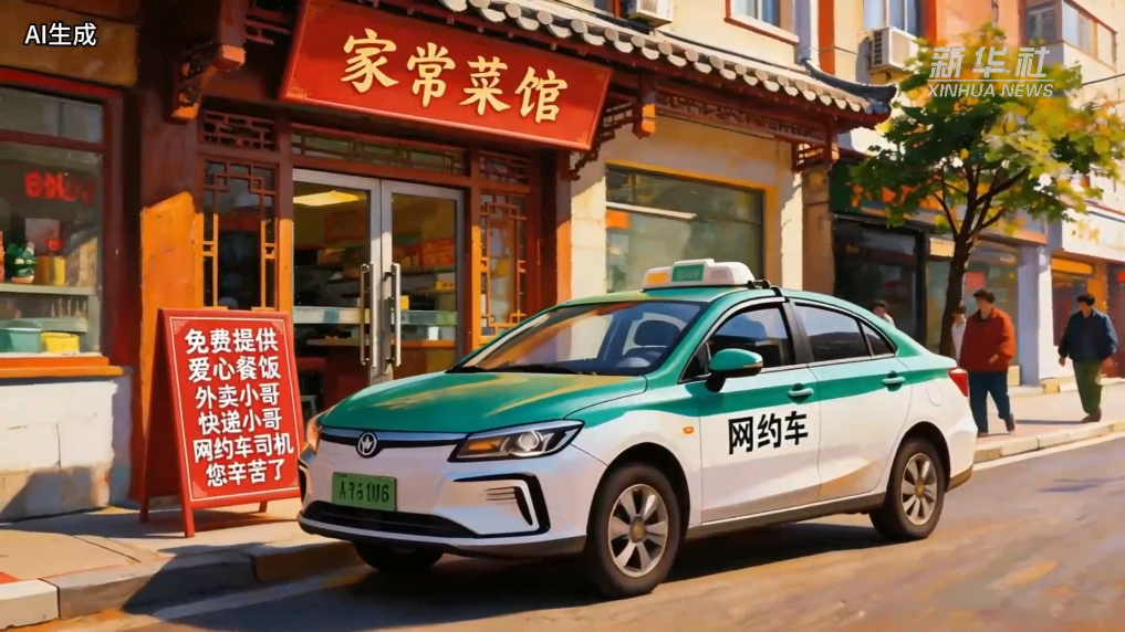 网约车司机在餐馆里吃到免费的爱心餐