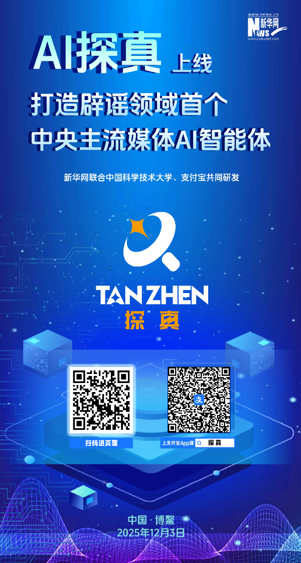 新华网海南博鳌12月3日电(记者李洪雷 霍晶莹)12月3日,由新华网联合中国科学技术大学、支付宝共同研发的“AI探真”智能体在企业家博鳌论坛2025新消费发展论坛上正式上线。作为我国辟谣领域首个中央主流媒体AI智能体,该系统的推出为网络谣言治理注入数智新动能,助力营造清朗网络空间。