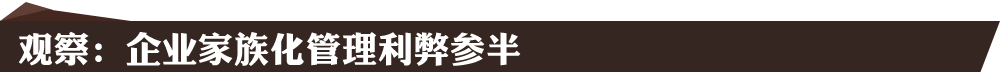 然而,在外界看來,“家族化”管理和“去家族化”管理各有利弊。國泰君安分析師余立峰在接受新華網(wǎng)的采訪時表示,“家族化”管理在企業(yè)發(fā)展初期還是有一定的優(yōu)勢,因為規(guī)模比較小,區(qū)域化較強,管理權(quán)制也相對集中,這樣有利于公司整體的規(guī)模和銷售的擴大。隨著企業(yè)的發(fā)展到了一定程度以后,也就是到了全國化布局的時候,需要區(qū)域上的分制,使總部和區(qū)域管理出現(xiàn)分制。