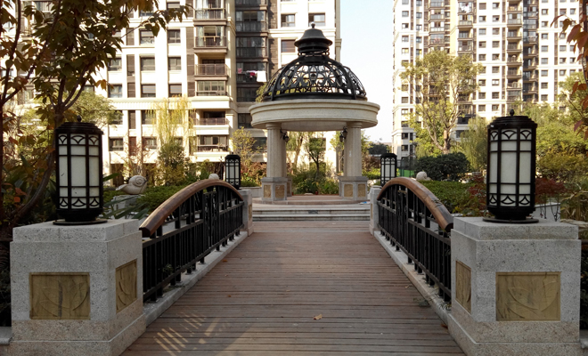 記者走訪小區(qū)時發(fā)現(xiàn),小區(qū)做到了一步一景,閑庭信步,不會感覺乏味,每走到一個地方可以通過不同角度欣賞小區(qū)的亭臺樓閣,小橋流水。據(jù)悉,綠地紫峰公館小區(qū)規(guī)劃參照了世界最美花園——英國伯德南特花園,利用藍(lán)色水系和綠色有氧跑道打造而成。