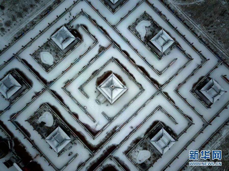 2月28日拍攝的甘肅省張掖市甘州區(qū)堿灘鎮(zhèn)古城村雪景(無(wú)人機(jī)照片)。新華社發(fā)(成學(xué)磊 攝)