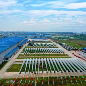 大型風(fēng)電葉片生產(chǎn)企業(yè)中材科技(萍鄉(xiāng))風(fēng)電葉片有限公司航拍景象。(王強(qiáng)攝 新華社通聯(lián)照片)