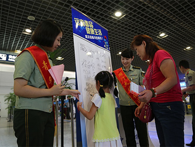 執(zhí)勤官兵向群眾宣傳禁毒知識