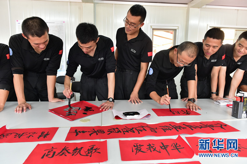 ????2月4日,在新春佳節(jié)來(lái)臨之際,第三支赴利比里亞維和警察防暴隊(duì)組織隊(duì)員開展“寫春聯(lián) 迎新春”活動(dòng)。