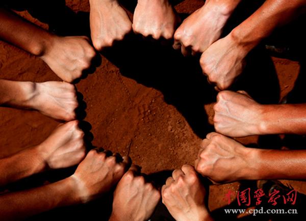 ????握緊拳頭,圍成同心圓,為了新營地加油!太陽底下,一雙雙手臂黑白分明,團結的拳頭盡顯力量之美。
