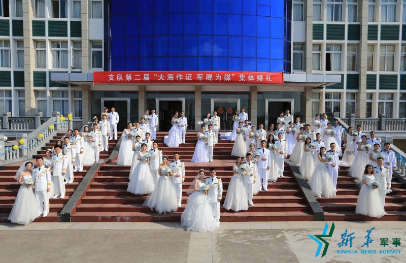 ????新華社杭州9月24日電(林健、方思航、史奎吉)9月24日,農(nóng)歷八月廿四,浙江舟山某軍港處處洋溢著喜慶,東海艦隊某驅(qū)逐艦支隊在這里為35對新人,舉行集體婚禮。這是這個支隊舉辦的第二屆“大海作證·軍艦為媒”主題集體婚禮。