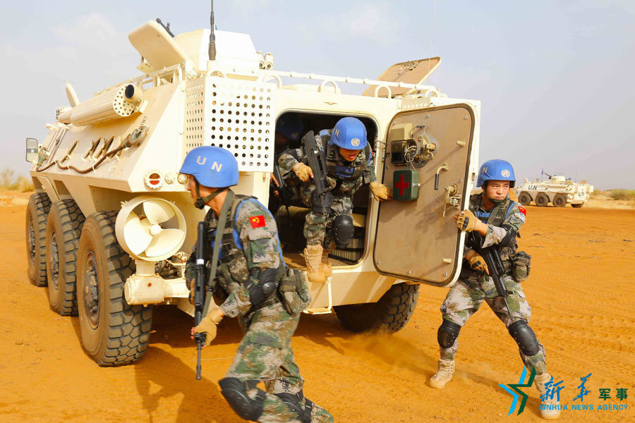 2014年10月20日,中國第二批赴馬里維和警衛(wèi)分隊(duì)實(shí)施行進(jìn)間處突演練——范存印攝
